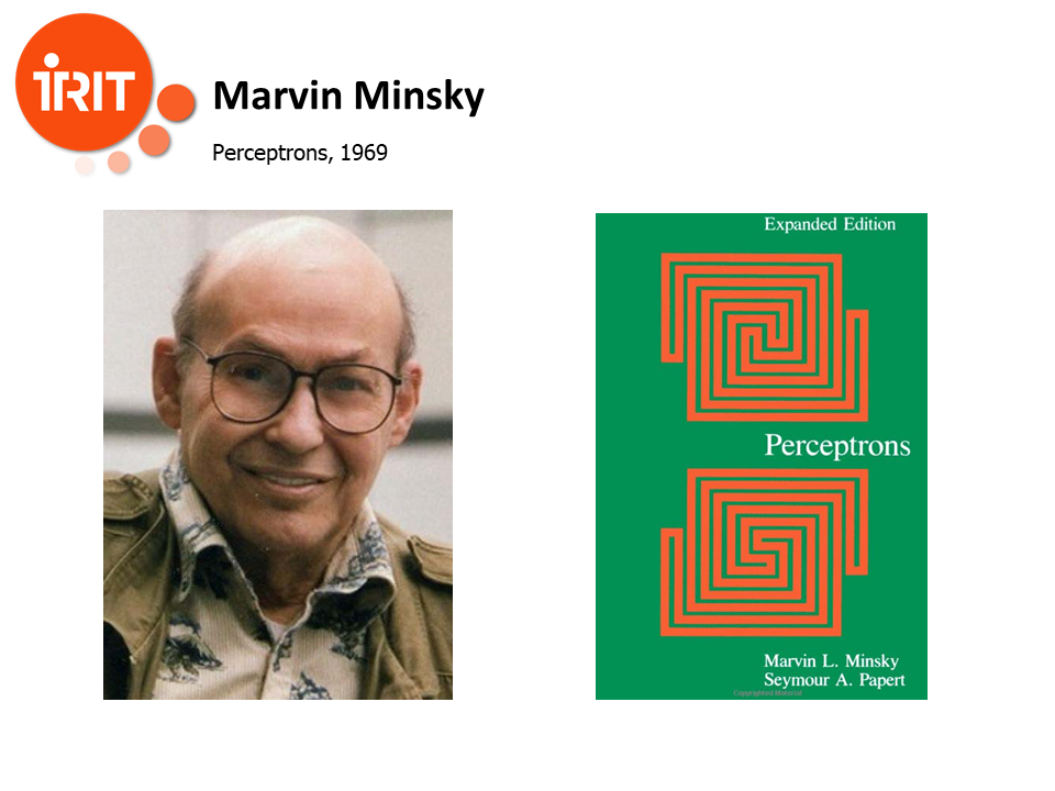 Minsky had worked in his early years on neural networks. He knew the field, but as he had himself said, he never believed in McCulloch and Pitts ideas, while he recognized the influence of Rashevsky, one of Pitt’s mentor. At the end of the sixties, Minsky and Papert, along with others such Newell, Simon, Shaw championed an approach to AI, that we might call cognitive AI, and whose goal was to create cognitive modelling of the brain, through sets of rules. The need for computing capacities was high, and the competition for Army funding was also very high. “Perceptrons” doesn’t contain any formal error. But the book is misleading, and according to Olazaran, on purpose, starting with the cover itself, which shows two figures, one connected and the other not connected, that perceptrons were not able to properly classify at the time. The book demonstrated some valid points, such as the impossibility for local neural networks to learn complex functions, and the need of fully connected, many layers, neural networks, which is correct. But the global perception of the book was that the whole approach behind perceptrons was doomed to fail.