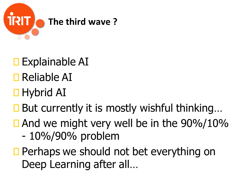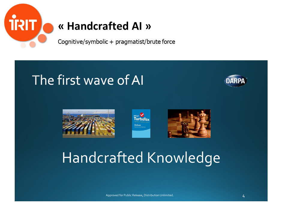 Now after this historical perspective, let’s go back to our current subject: what DARPA calls the second wave of AI, even if I, like many others, think that it is more a third wave than a second wave. Today everything is about deep learning and machine learning. But things have not been as simple as they seem.