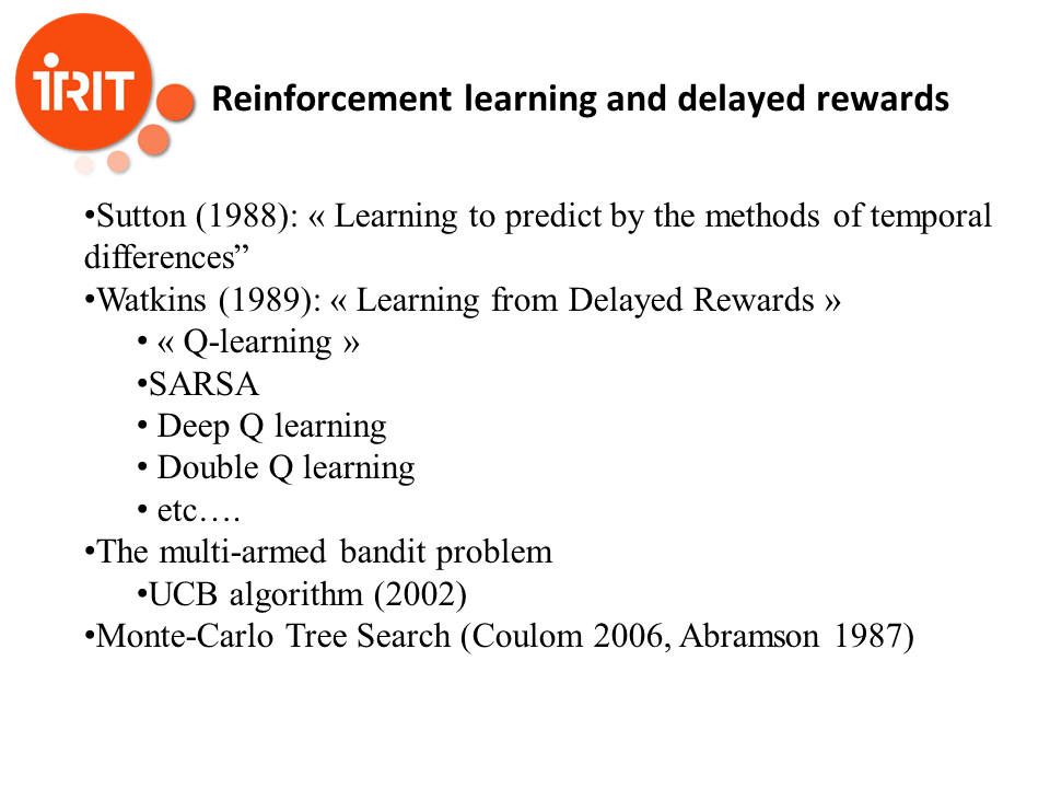As I already said, fast parallel hardware was behind the boom of machine learning. But other advances in algorithms and maths were also behind it. I don’t want to make a complete lesson on machine learning and reinforcement learning, which is a field as old as the work of Arthur Samuel (1959): “Some Studies in Machine Learning Using the Game of Checkers” and of course of Donald Michie (1962) with the famous MENACE (Matchbox Educable Noughts And Crosses Engine) machine. And we had significant advances, especially regarding the problem of delayed rewards in machine learning, as soon as 1988 with the methods of temporal differences by Sutton, then Watkins (1989): “Learning from Delayed Rewards”, later we had the development of other algorithms such as “Q-learning”and the likes, and of course the development of the Upper Confidence Bound method to solve the multi-armed bandit problem by Auer in 2002. The last brick was added by Remi Coulom with Monte-Carlo Tree Search, which was central to the AlphaGo program. In fact, Aja Huang, the lead programmer of AlphaGo, had his PhD under the supervision of Remi Coulom before being hired by DeepMind.