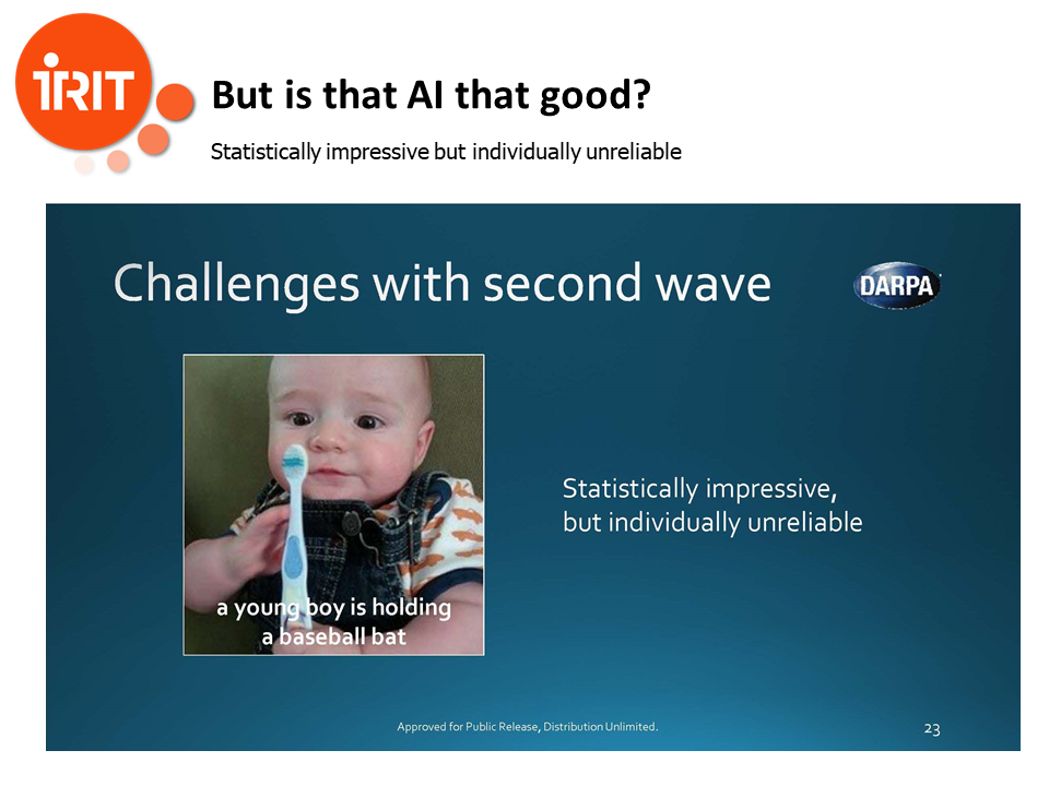 DARPA wrote that “Artificial Intelligence is statistically impressive but individually unreliable”.