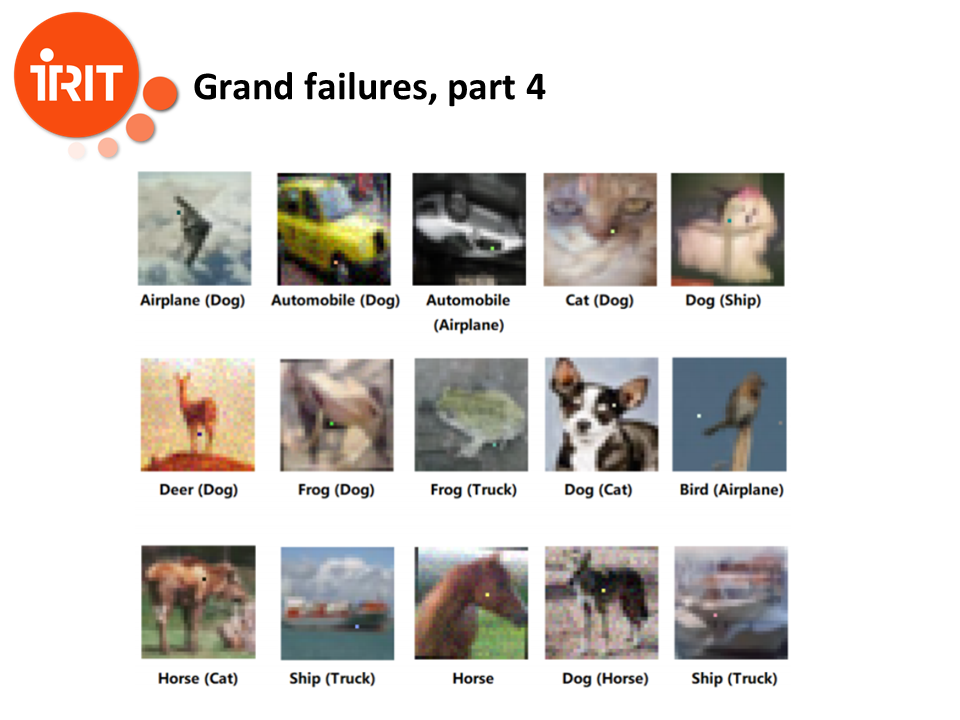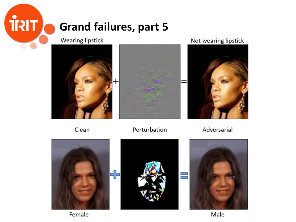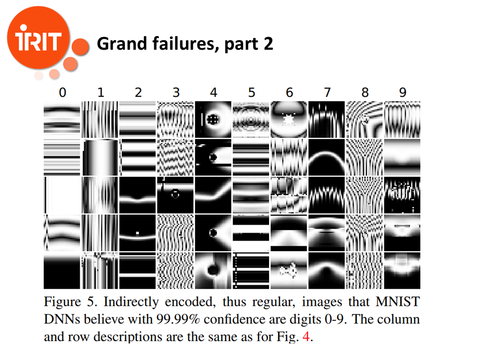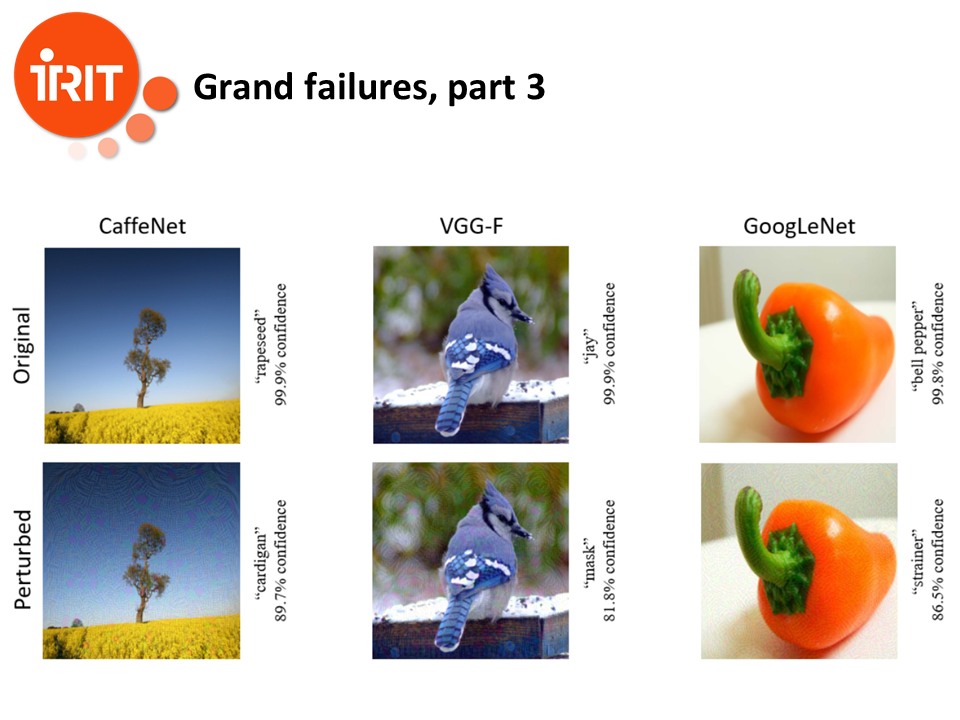Here, very small perturbations of images change completely the interpretation, while still getting a very high level of confidence, and for all of the best networks.
