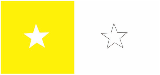 Figure 2.6: En regardant fixement la partie gauche de la feuille, puis rapidement la partie droite, on constate que l’étoile de droite est bleutée au lieu d’être blanche (extrait de [Con09])