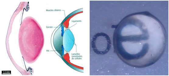 Le cristallin est un des milieux transparents constituant l’œil. Il a une forme de lentille biconvexe. Placé juste derrière la pupille, le cristallin fonctionne comme une loupe très souple directement intégrée dans notre œil. Lorsque l’on fixe un objet au loin, le cristallin est au repos, légèrement bombé : il permet à l’image de se reconstituer sur la rétine, comme sur un écran. Si on fixe un objet de près, l’œil règle la netteté de l’image : le cristallin s’arrondit davantage, pour que les rayons lumineux se rencontrent, à nouveau, sur la rétine. Enfin si le cristallin adopte sa forme normale, l’objet observé se situe à la distance maximale que peut supporter l’œil Nous n’avons pas le temps de nous apercevoir que notre œil a rétabli la netteté de l’image: cette mise au point,s’appelle l’accommodation. L’accommodation du cristallin est rendue possible grâce aux cellules qui le compose: elles ont perdu leur noyau, sont remplies de cristalline (protéine soluble transparente) et sont également très élastiques. L’accommodation est régulée par les muscles ciliaires, situés sur la tunique moyenne.