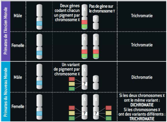 Dans les précédents chapitres, nous avons vu que de nombreuses caractéristiques de la vision humaine et de ses anomalies pouvaient s’expliquer par le modèle trichromique et la génétique qui le sous-tend.