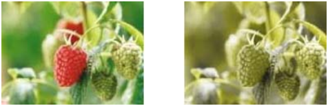 Cet exemple montre bien que la notion de contraste de couleur est conservée alors que la capacité à distinguer les couleurs a disparu, ce qui s’explique à nouveau par un fonctionnement correct de la partie de V1 qui assure la distinction du contraste de couleur, mais une perte de fonctions d’ordre supérieur, non encore identifiée.