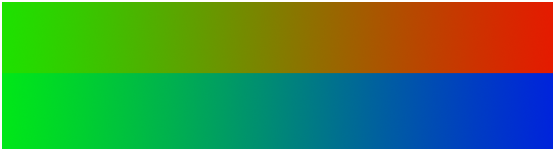 Figure 6.7: Le vert se dissout dans le bleu, alors que l’on distingue clairement le jaune et l’orange lors du passage du vert au rouge