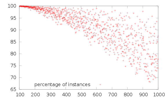 The performance of the algorithm is good: the native code version solves the complete problem (the 13243 instances) in 160s, or a mean of 0.01s by instance.