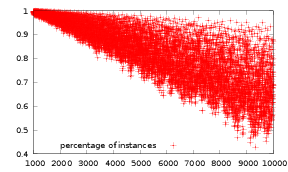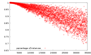 A Sets Instances % unsolved 1 12017 1046711 8.79% 2 10757 758822 6.37% 3 9059 503409 4.22% 4 6275 196070 1.65% 5 5004 128631 1.08% 6 3507 74137 0.622% 7 2478 48932 0.411% 8 1637 29165 0.245% 9 926 13889 0.117% 10 593 7231 0.0607% 20 294 2706 0.0227% 30 99 443 0.00372% 40 55 311 0.00261% 50 41 225 0.00189% 60 40 221 0.00185% 70 35 206 0.00173% 80 31 166 0.00139% 90 28 130 0.00109% 100 20 77 0.000647% 200 17 62 0.000520% 300 16 55 0.000461% 400 16 54 0.000454% 2000 16 54 0.000454% 3000 15 53 0.000445% 4000 14 52 0.000437% 10000 14 51 0.000428% 20000 13 49 0.000412% 45000 13 49 0.000412%