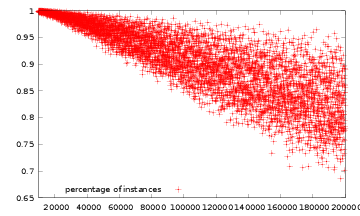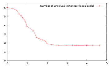 Programs are so fast that trying to accurately measure the execution time of a single instance is impossible. So, in the rest of this section, all programs solve the complete set of instances and the time recorded is the time to complete the entire set: when a time of 160s is given, the mean time of resolution of one instance is 160/13243=0.01s