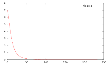 We see that with the depth first algorithm, the time for solving instances with 7 numbers is 62 (740/12) times larger than with n=6. This is completely compatible with the minimal complexity of this algorithm, which predicts a ratio of 63.